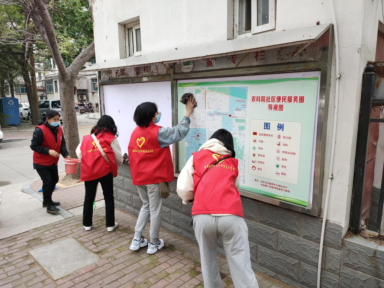 下午2:30,我院党员志愿者们在文化路街道农科院社区门口集合完毕,农科院社区相关工作人员对社区目前情况对志愿者们做了简单的介绍并进行了活动分工和简单的活动前培训,培训结束后将志愿者们分为两组分别前往不同的地点开展志愿服务活动