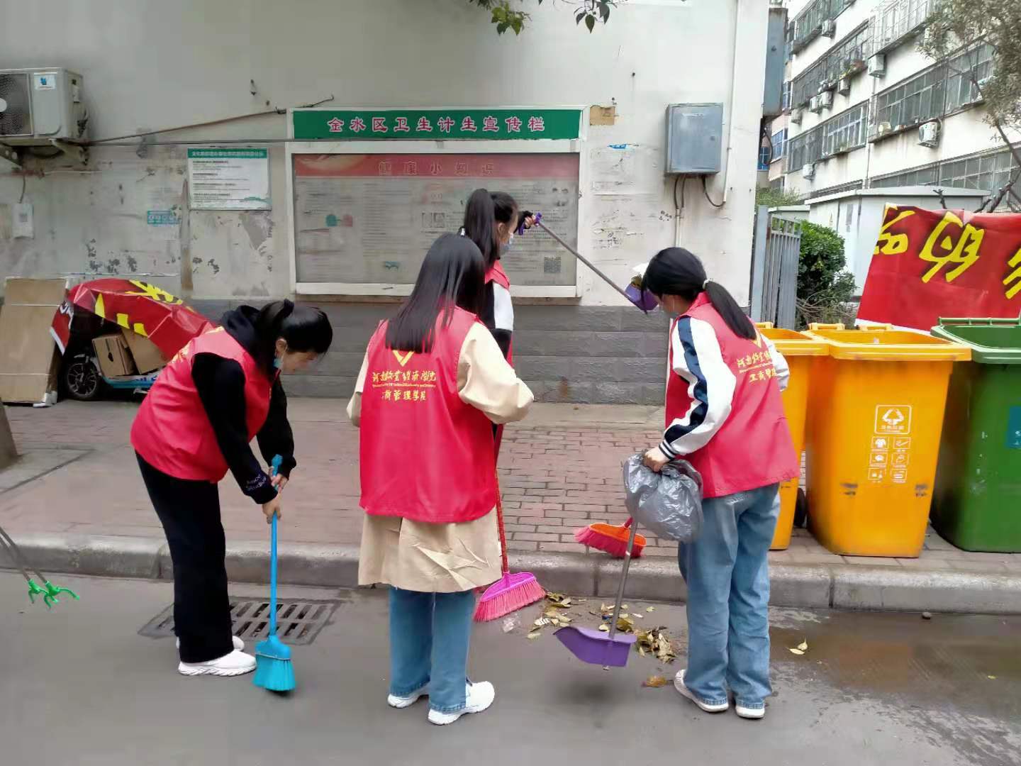 为了进一步落实校党委和我院党委的号召,让我院党员青年学党史感党恩跟党走活动持续深入,同时深入基层进行锻炼提高为人民服务的自觉性和卫生意识, 2021年4月3日我院选派30多名党员和入党积极分子,与文化路街道农科院社区党总支会辖区党员志愿者、居民志愿者一道在农科院辖区内开展“创卫关联你我他,环境建设靠大家”志愿服务活动,旨在通过活动在帮助社区完善社区环境卫生的同时也用向辖区居民宣传创卫知识和发放垃圾分类手册的方式进一步强化社区居民的环保卫生意识以达到保护环境卫生大家共同参与的目的