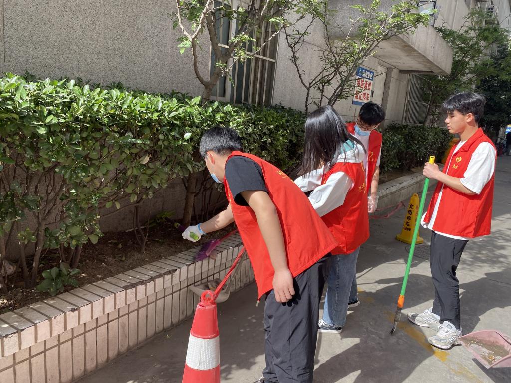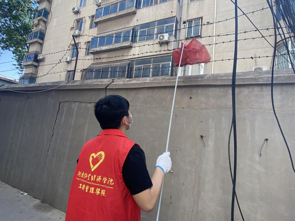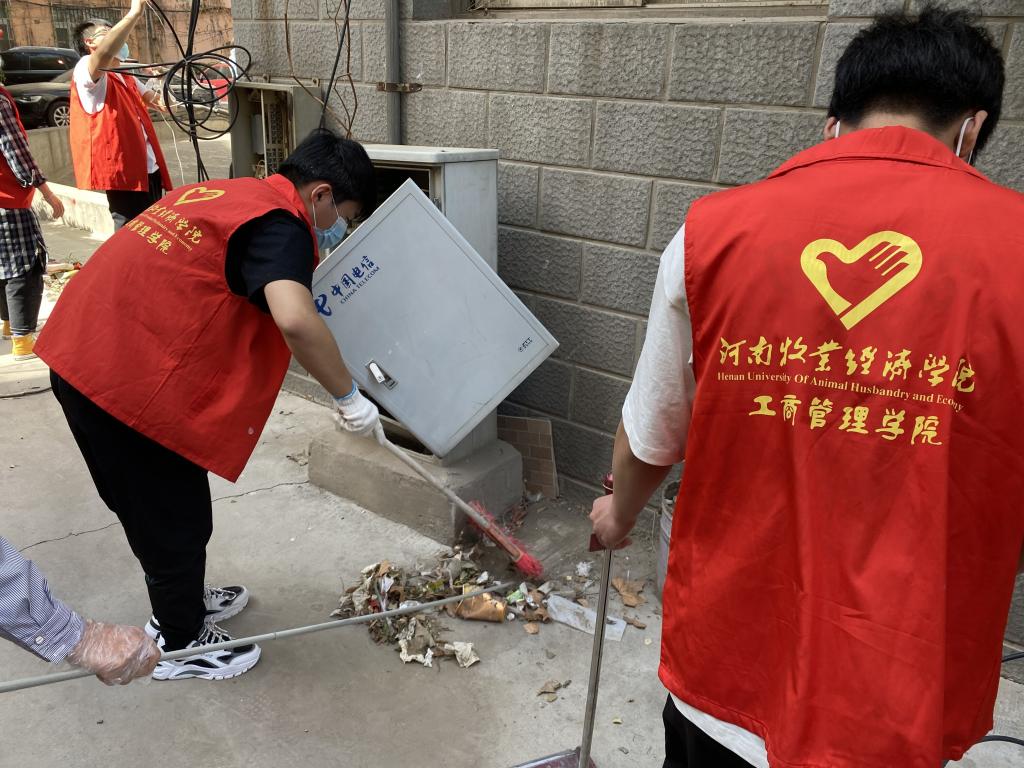 为了进一步落实校党委和我院党委的号召,让我院党员青年学党史感党恩跟党走活动持续深入,助力郑州市创建卫生城市复审工作的顺利进行,落实绿色发展理念,引导广大青年志愿者积极投身生态环保实践,4月17日,我院志愿者到农科路社区建业凯旋广场附近的小区进行志愿服务活动。