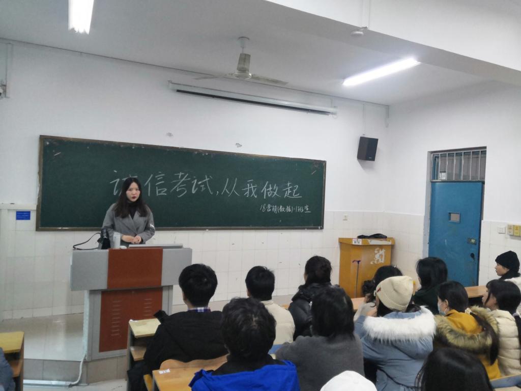 目前,我校学生已全面进入2020年期末备考阶段。为了进一步增强诚信考试的意识,杜绝考试作弊行为的发生,我院于12月22日--24日组织各年级各班举行了诚信考试教育动员会。