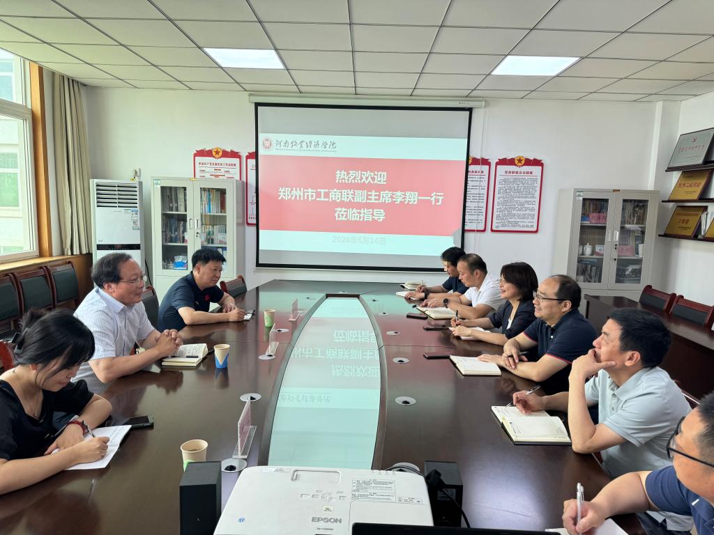 王国辉书记首先对李主席的一行表示热烈欢迎并感谢郑州市工商联一直以来对学院工作的支持和帮助,而后从历史沿革、师资队伍建设、专业建设和校企合作开展情况等方面介绍了学院的基本概况。何丽娜院长从强化应用型科研反哺教学、人才培养质量提升、成果转化及智库建设等方面谈了合作的设想,希望能够通过不同形式的合作促进双方资源共享,实现互利共赢,进一步发挥高校服务地方经济社会发展职能。李翔副主席介绍了郑州市工商联的基本概况,并围绕开展专题调研、智库建设、参政议政和提供决策咨询服务阐述了双方合作的前景,并表示希望在智库建设和服务学校毕业生就业方面提供必要的支持和服务。随后,与会人员结合校政合作、产教融合、平台打造等方面进行了深入讨论。