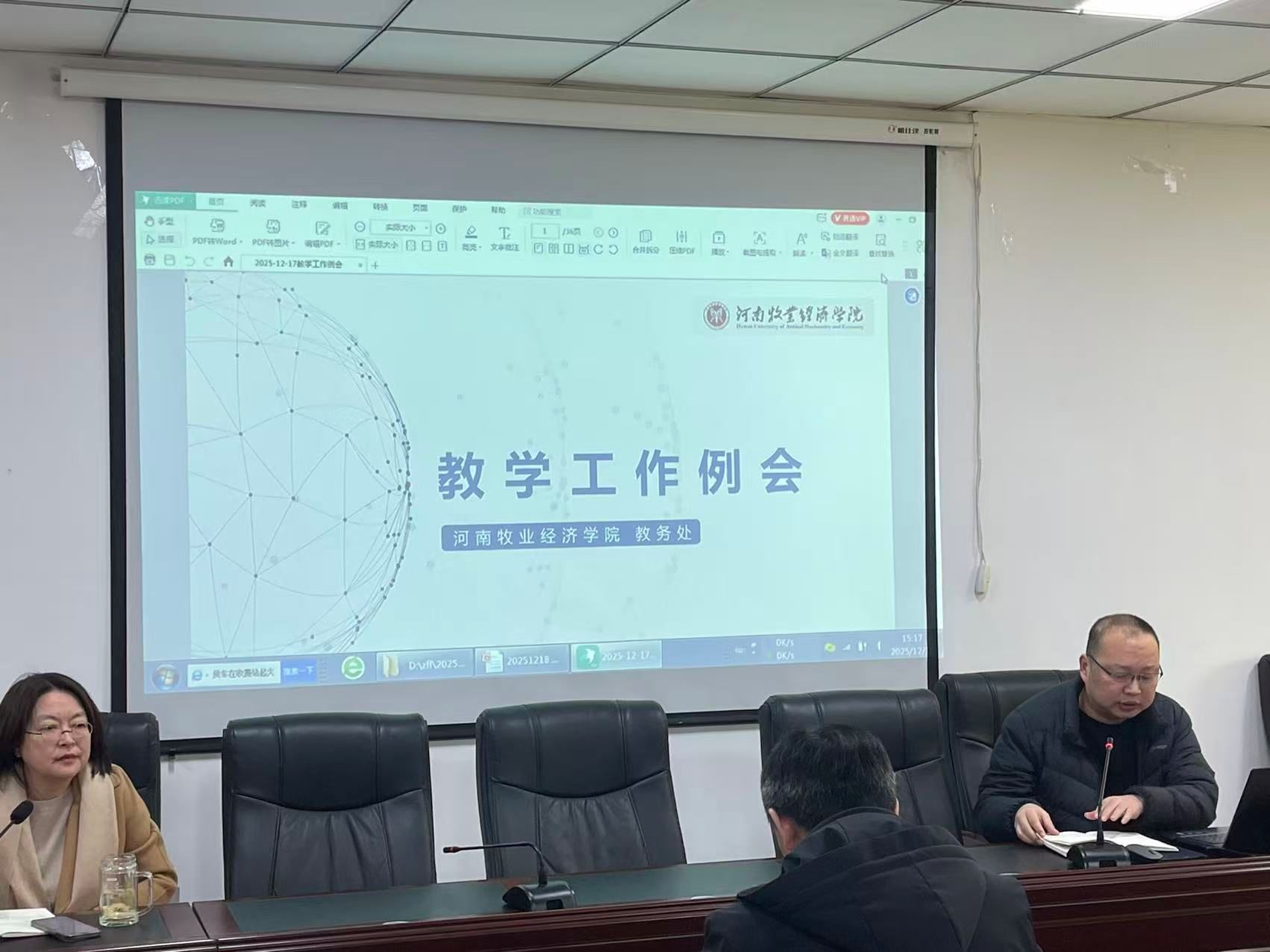 会上,副院长陈科首先传达了学校教学工作会议的核心内容,详细通报了学校关于学科专业优化设置、数据填报、期末考试组织、实践教学推进、毕业生工作、学生评教反馈等方面的工作要求,让全体教师清晰把握学校教学工作的整体部署与核心导向。结合学校会议精神与学院实际,对期末及后续教学工作进行全面部署。他强调,全体教师要以学校制度文件为遵循,扎实推进各项工作落地:一是提高政治站位,各专业教研室要迅速组织教师开展制度学习,确保每位教师吃透政策要求,规范教学各环节流程;二是严格落实期末考核管理,做好线上无纸化考试的培训与筹备工作,强化考务管理与保密意识,筑牢考风考纪防线,确保考试公平公正;三是严把毕业环节质量关,重点做好学籍异动学生毕业资格审查,强化毕业论文(设计)过程管理与原始数据核查,坚决防范学术不端行为;四是深化实践教学改革,聚焦应用型人才培养目标,加快校企合作实践基地拓展,规范实习管理与风险防控,以学科竞赛为抓手提升学生实践能力;五是严格执行外聘教师管理办法,从选聘、教学过程监管到考核评价形成闭环,确保外聘教师教学质量。