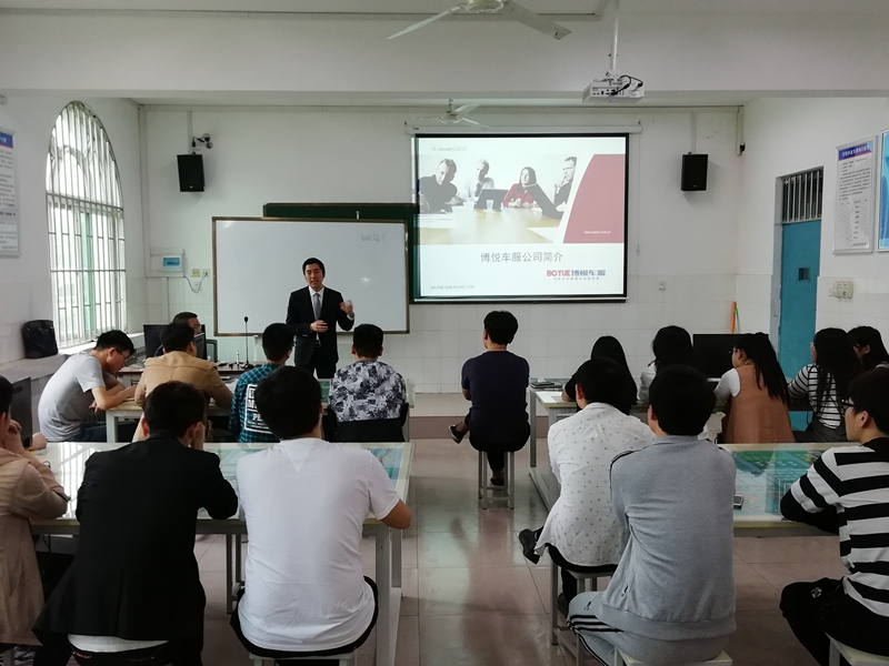 博悦订单班是WilliamHill中文与博悦车服合作的第三期订单班,目的为区域品牌二手车企业定向输送人才,培养方向为驻店评估师。任主任谈到,博悦订单班几年来的建设深化了产教融合、加强了校企对接,有效推动汽车营销专业的教学改革,同学们要珍惜这次学习和培训机会,认真学习,严格要求自己,为行业的发展做出贡献。随后张主任阐明了订单班的培养目标和考核要求,刘博老师宣读了《WilliamHill中文博悦订单班管理办法》。最后郝总为同学们做了《汽车行业发展趋势与大学生职业规划》的精彩报告。