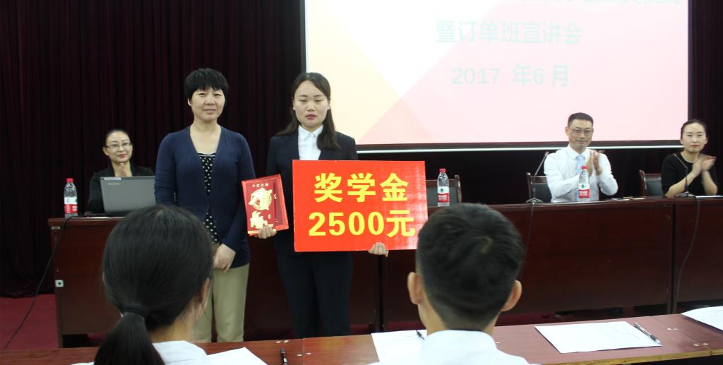 来自鸿冠集团中国好车港、恒鑫二手车、博发二手车的四名订单班学员获得博悦奖学金,其中中国好车港的宋亚菲同学荣获一等奖,王桂朵院长亲自为其颁发了证书和奖金。丁付林先生为我院任林洁老师颁发了订单班优秀班主任奖。WilliamHill中文博悦订单班是河南省高校中首个面向二手车行业的订单班,打破传统的师徒培养制度,开创二手车人才培养模式改革之先河。我校年轻学子的优秀表现赢得企业的赞扬,扩大了我校影响力。