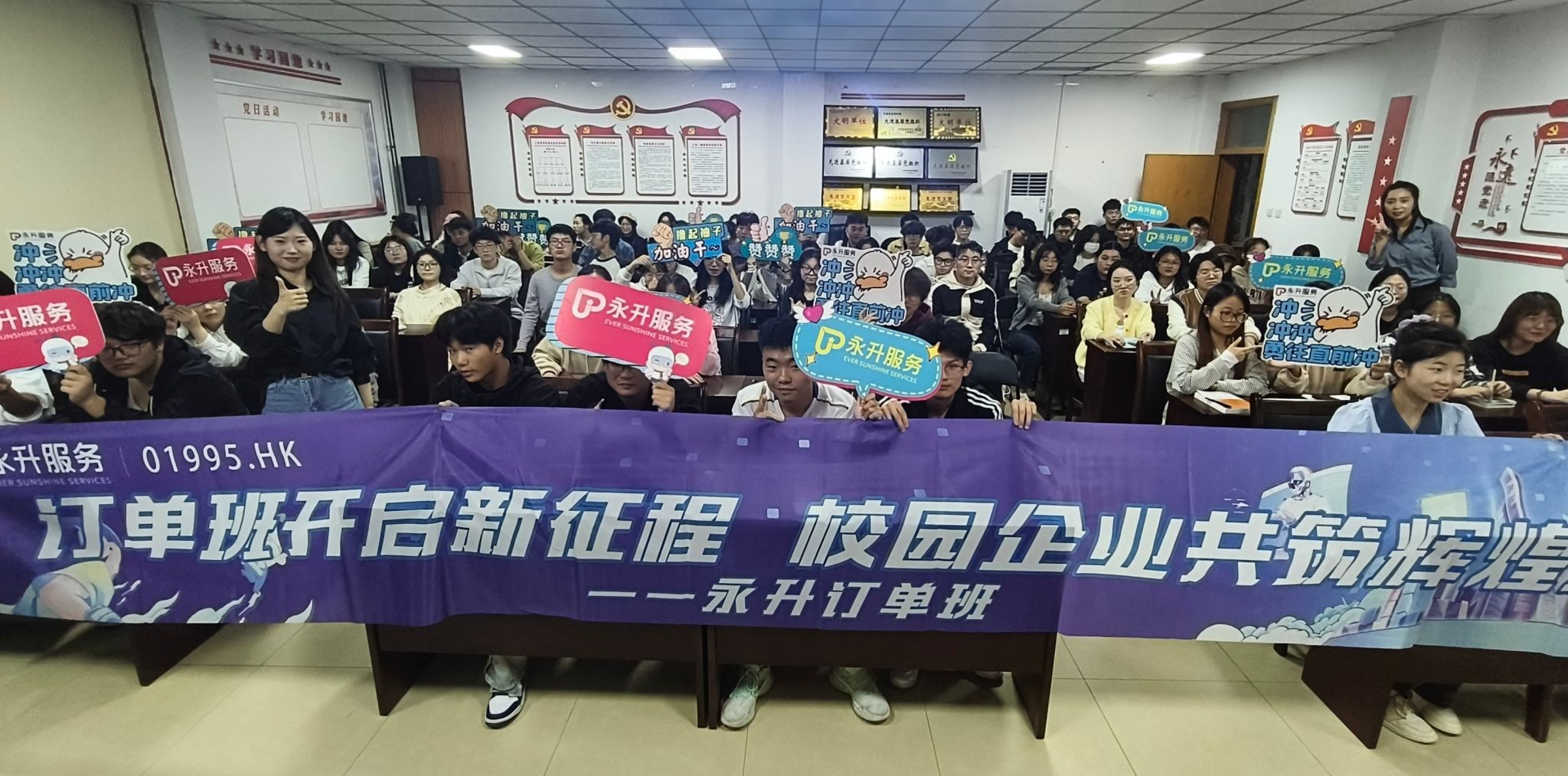 开班仪式上,陈先锋副院长首先对吴轩君一行莅临我校参加永升服务班开班仪式热烈欢迎,对双方的合作充满信心,希望永升服务班在应用型人才培养取得优异成绩。希望双方通过订单班的组建,进一步开展师资互聘、共建培训平台等深层次的合作,共同提升我院的办学质量与企业的管理水平,并要求学员要积极配合企业做好订单班的工作,为进一步深化校企合作提供有益经验。詹珅副书记在感谢企业的互利互促合作之际,用自己的经历告诉大家,选择比努力更重要,提前对自己人生规划有清晰的认知,早日加入优质的成长型服务类上市企业对自我后期成长会有莫大的益处。