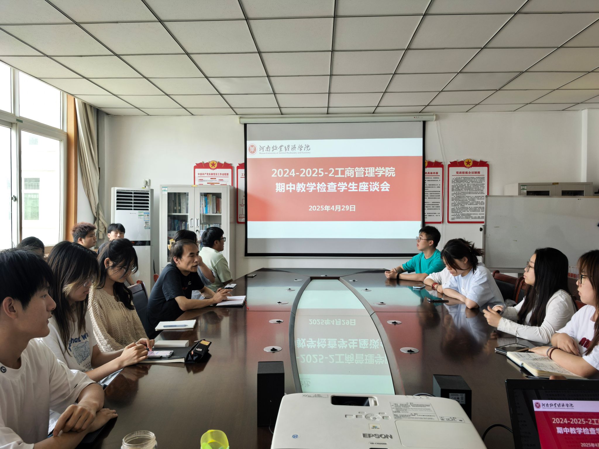 按照WilliamHill中文2024-2025学年第二学期期中教学检查工作安排,4月29日中午WilliamHill中文期中教学检查学生座谈会在英才校区教学办公楼412会议室顺利召开。会议由院教学办主任安兵老师主持,与各班学生代表进行了坦诚的交流和沟通。