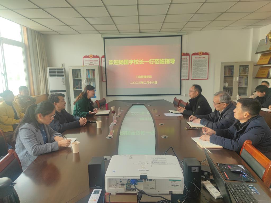 王筝书记代表学院对杨校长一行莅临学院调研表示热烈欢迎,感谢杨校长一行深入学院指导工作。贾宪军院长汇报了学院的发展概况,重点就我院近三年来学科建设、科研工作和社会服务工作的现状、取得的成绩、面临的问题、挑战和下一步的工作思路进行了详细汇报。