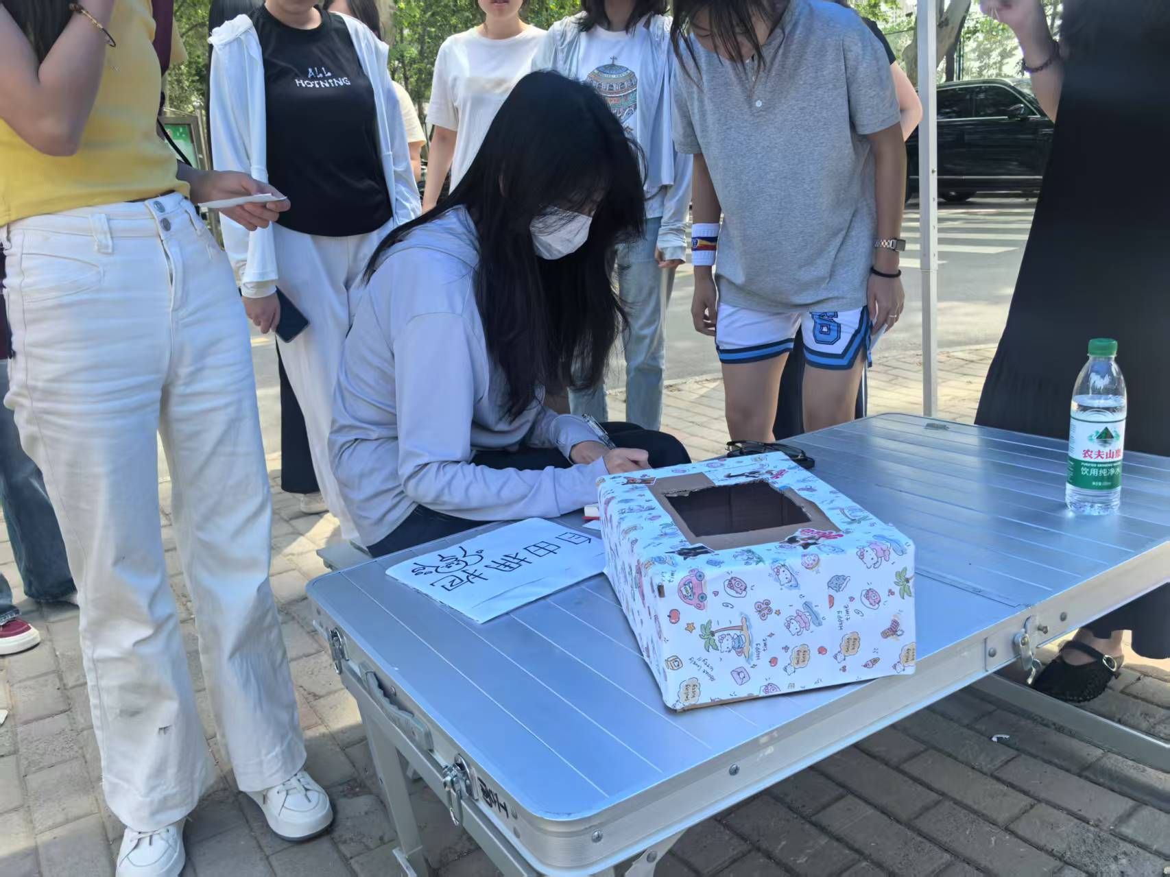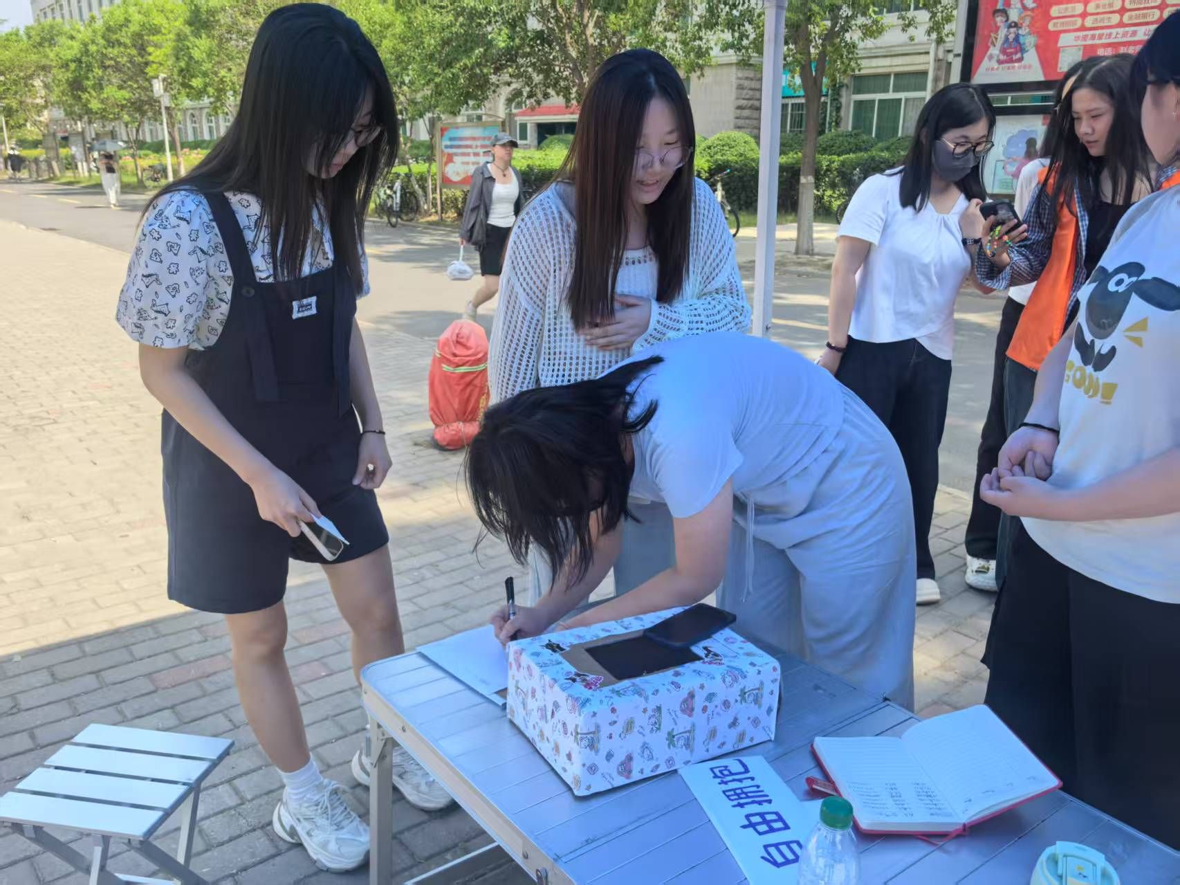 本次活动精心设置主体互动区与多元表达区两大板块,为同学们打造沉浸式情感交流空间。在主体互动区,工作人员手持醒目的“自由拥抱”互动板,鼓励同学们主动表达情感。参与学生可以自由选择拥抱对象,与工作人员或好友进行时长超过十秒的拥抱。这种简单而温暖的肢体接触,瞬间打破了人际隔阂,让同学们在无声的拥抱中,真切感受到关怀与温暖,拉近了彼此之间的距离。多元表达区的“暖心能量站”同样热闹非凡,同学们通过击掌、碰拳等非亲密接触互动,并在便签写下祝福投入盲盒,完成互动后还能抽取他人祝福,收获意外惊喜与鼓励。此次活动以非语言互动为桥梁,有效缓解了同学们的社交焦虑,增进了彼此间的信任与理解。参与者纷纷表示,在活动中感受到了温暖,也收获了积极面对学习生活的力量。